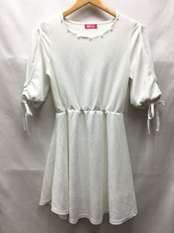 MA*RS マーズ パール装飾 袖シフォン切替 フレア ワンピース 白 サイズ:F 【中古】【2500円以上で送料無料】